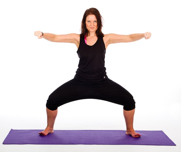 Warrior II – with happy toes! reminder: chill out your neck and stop bending those fingers!